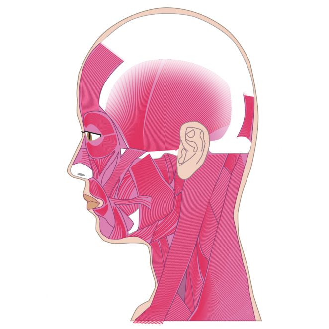 この薄い皮膚を下から支えているのは筋肉なのです。