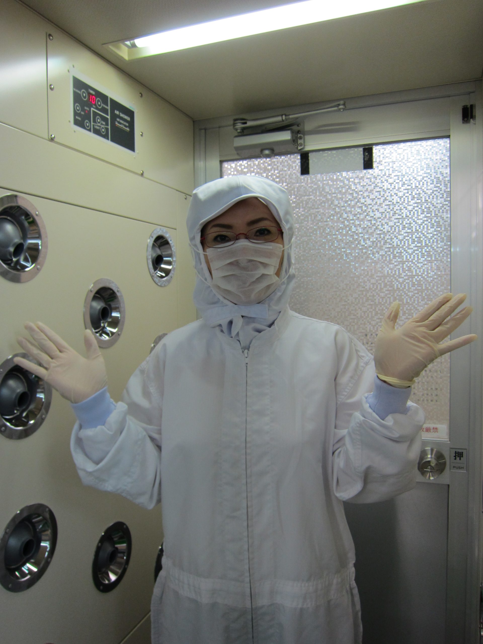 無菌室内に立ち入る前に、私も作業着に着替え、まずは念入りに手洗いし、アルコールで消毒。